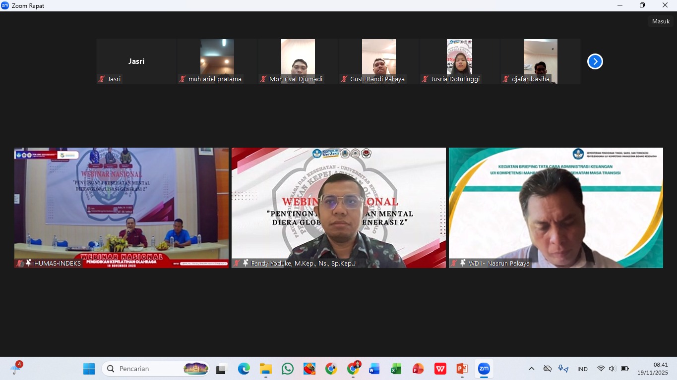 KINIGORONTALO.COM, Gorontalo – Angkatan 2023 Jurusan Pendidikan Kepelatihan Olahraga, Fakultas Olahraga dan Kesehatan Universitas Negeri Gorontalo (UNG), sukses menyelenggarakan webinar nasional bertajuk “Pentingnya Kesehatan Mental Generasi Z di Era Globalisasi”, pada Rabu (19/11/2025).